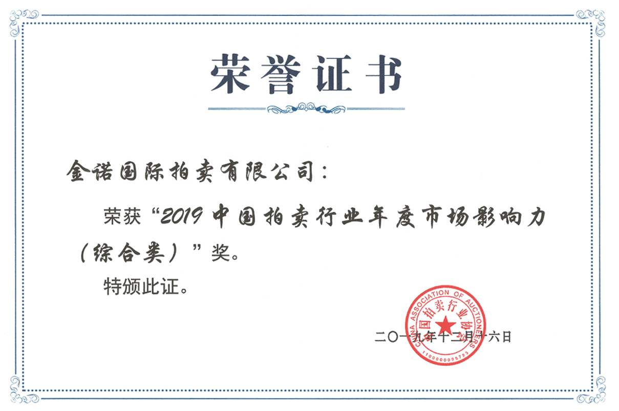 中國拍賣行業(yè)年度市場影響力(綜合類)獎