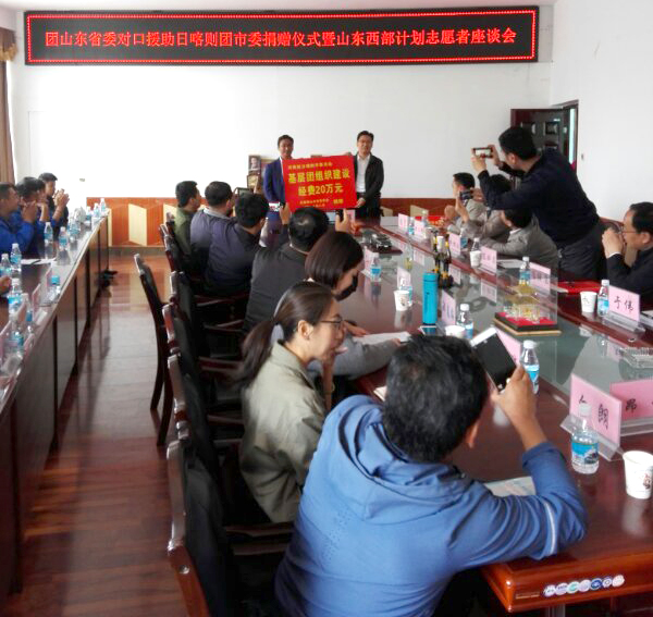 在西藏期間,團省委與對口支援地日喀則團市委簽署了援助工作備忘錄,向團日喀則市委捐贈共青團工作經(jīng)費20萬元,捐建希望圖書室5個,濟南、青島等團市委在對口支援的白朗、桑珠孜區(qū)等地開展了愛心捐助等活動。陳必昌一行還看望了山東援藏干部和山東“西部計劃”志愿者代表,與他們座談交流,詳細了解他們在西藏的工作、生活情況。