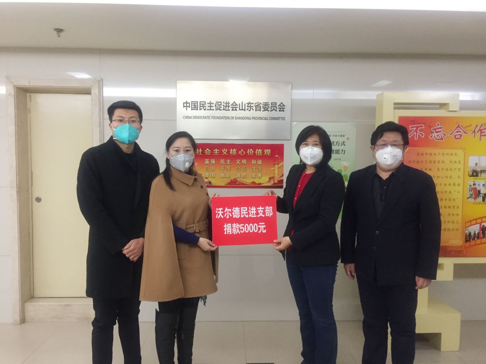 2月4日,沃爾德集團(tuán)民進(jìn)支部副主委、金諾國(guó)拍副董事長(zhǎng)胡懷英,民進(jìn)會(huì)員、金諾國(guó)拍總經(jīng)理助理主金坤前往中國(guó)民主促進(jìn)會(huì)山東省委員會(huì),代表沃爾德集團(tuán)及集團(tuán)民進(jìn)支部捐贈(zèng)愛(ài)心款5000元,用于支持山東民進(jìn)抗擊疫情第一線。
