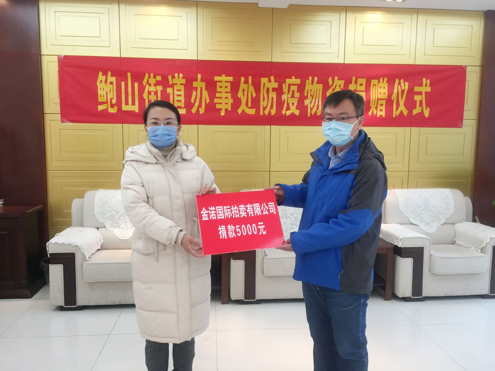 2月6日,積極響應(yīng)中國(guó)拍賣(mài)行業(yè)協(xié)會(huì)《中國(guó)拍賣(mài)人,行動(dòng)起來(lái),支援抗疫》倡議書(shū),金諾國(guó)拍董事長(zhǎng)商雪梅、總經(jīng)理位琳前往歷城區(qū)鮑山辦事處,向不辭辛苦戰(zhàn)斗在抗疫情一線的領(lǐng)導(dǎo)和工作人員表示敬意和問(wèn)候,并捐款5000元表示慰問(wèn)。