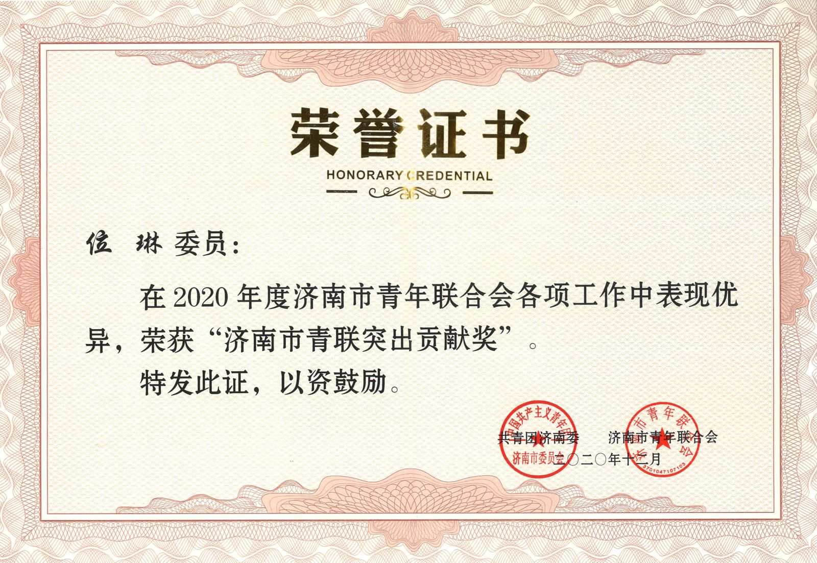 會(huì)上表?yè)P(yáng)了2020年濟(jì)南市青聯(lián)杰出成就獎(jiǎng)、突出貢獻(xiàn)獎(jiǎng)、優(yōu)秀青聯(lián)委員、青聯(lián)優(yōu)秀秘書長(zhǎng)、青聯(lián)活躍界別組。金諾國(guó)際集團(tuán)總裁位琳在2020年度濟(jì)南市青年聯(lián)合會(huì)各項(xiàng)工作中表現(xiàn)優(yōu)異,榮獲“濟(jì)南市青聯(lián)突出貢獻(xiàn)獎(jiǎng)”。