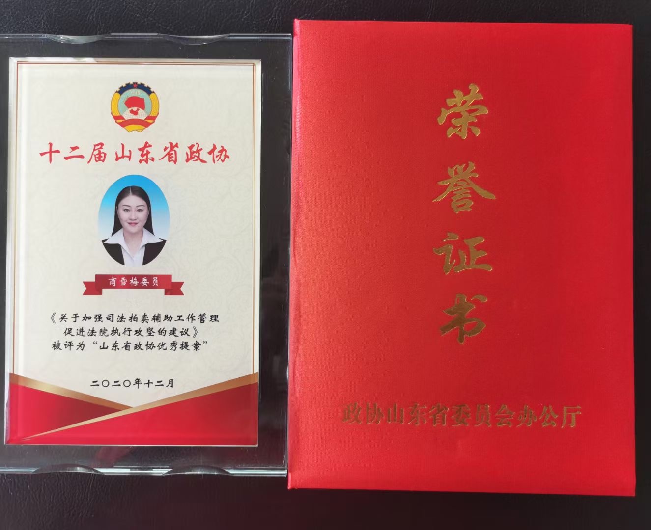會(huì)議表彰了十二屆省政協(xié)以來的優(yōu)秀提案、先進(jìn)提案承辦單位和先進(jìn)提案工作者。山東省政協(xié)委員、山東省新的社會(huì)階層人士聯(lián)誼會(huì)副會(huì)長、金諾國拍集團(tuán)董事長商雪梅撰寫的《關(guān)于加強(qiáng)司法拍賣輔助工作管理促進(jìn)法院執(zhí)行攻堅(jiān)的建議》被評(píng)為“山東省政協(xié)優(yōu)秀提案”,并在大會(huì)上作為唯一一位優(yōu)秀提案代表進(jìn)行了題為《情系建言路 廖力著文章》的匯報(bào)發(fā)言。
