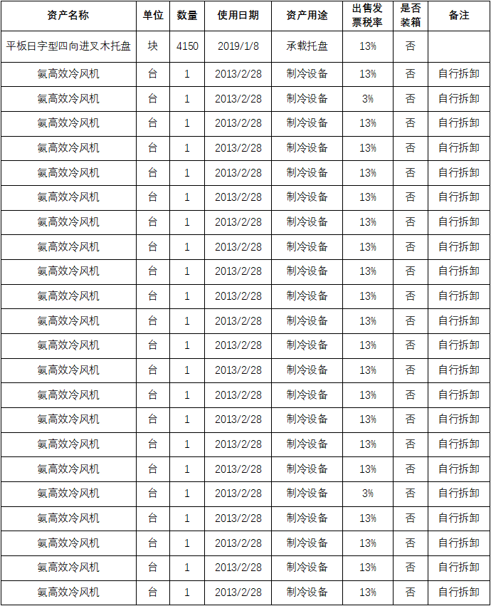 受委托,我公司將于2022年1月12日上午10時(shí)在金拍網(wǎng)平臺(tái)https://www.jinpaiwang.com.cn以網(wǎng)絡(luò)競(jìng)價(jià)的方式公開(kāi)處置 平板日字型四向進(jìn)叉木托盤(pán)、氨高效冷風(fēng)機(jī)等一批設(shè)備((具體見(jiàn)標(biāo)的詳情表)。