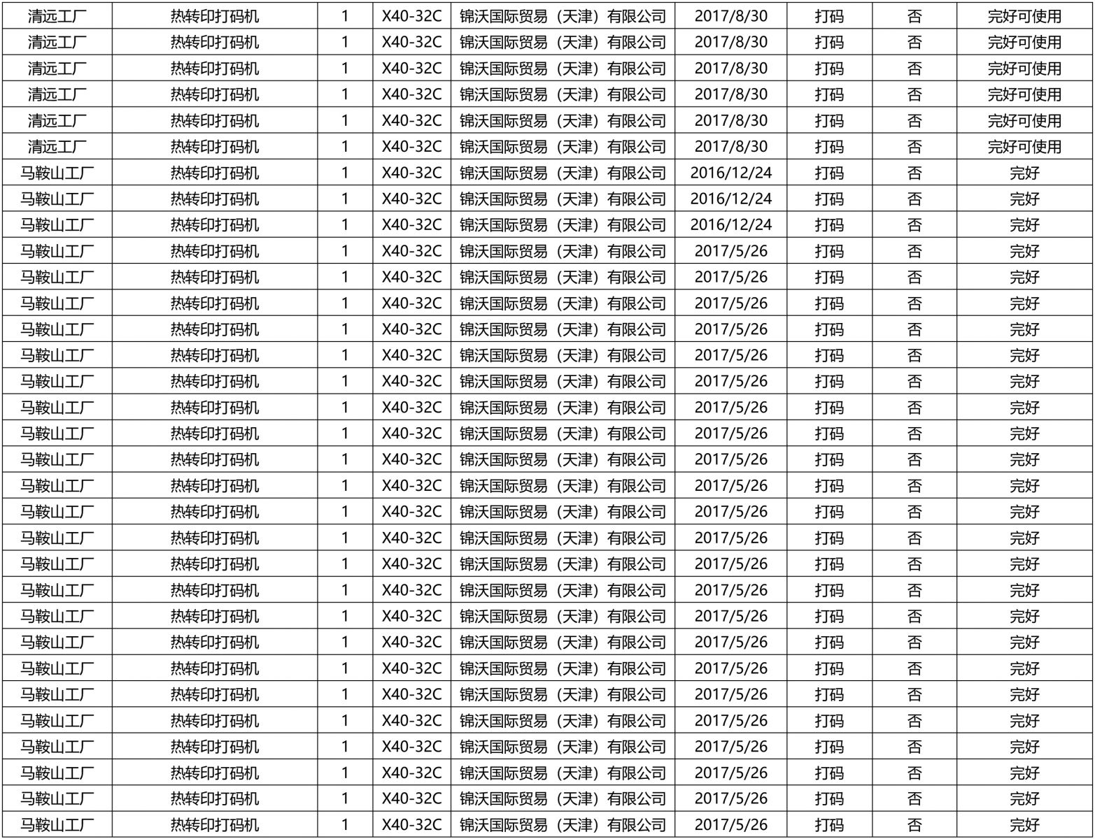 注:標(biāo)的涉及多個工廠的熱轉(zhuǎn)印打碼機(jī),如成交需與不同工廠簽訂購銷合同。