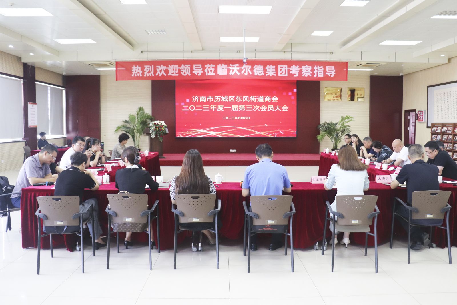 6月8日上午,濟(jì)南市歷城區(qū)東風(fēng)街道商會(huì)二O二三年度一屆第三次會(huì)員大會(huì)在沃爾德集團(tuán)召開。東風(fēng)街道二級(jí)調(diào)研員鄭慶江,黨工委委員、辦事處副主任李震出席會(huì)議。商會(huì)會(huì)長孫海蓉、副會(huì)長位琳、秘書長李春玲等成員單位代表參加會(huì)議。