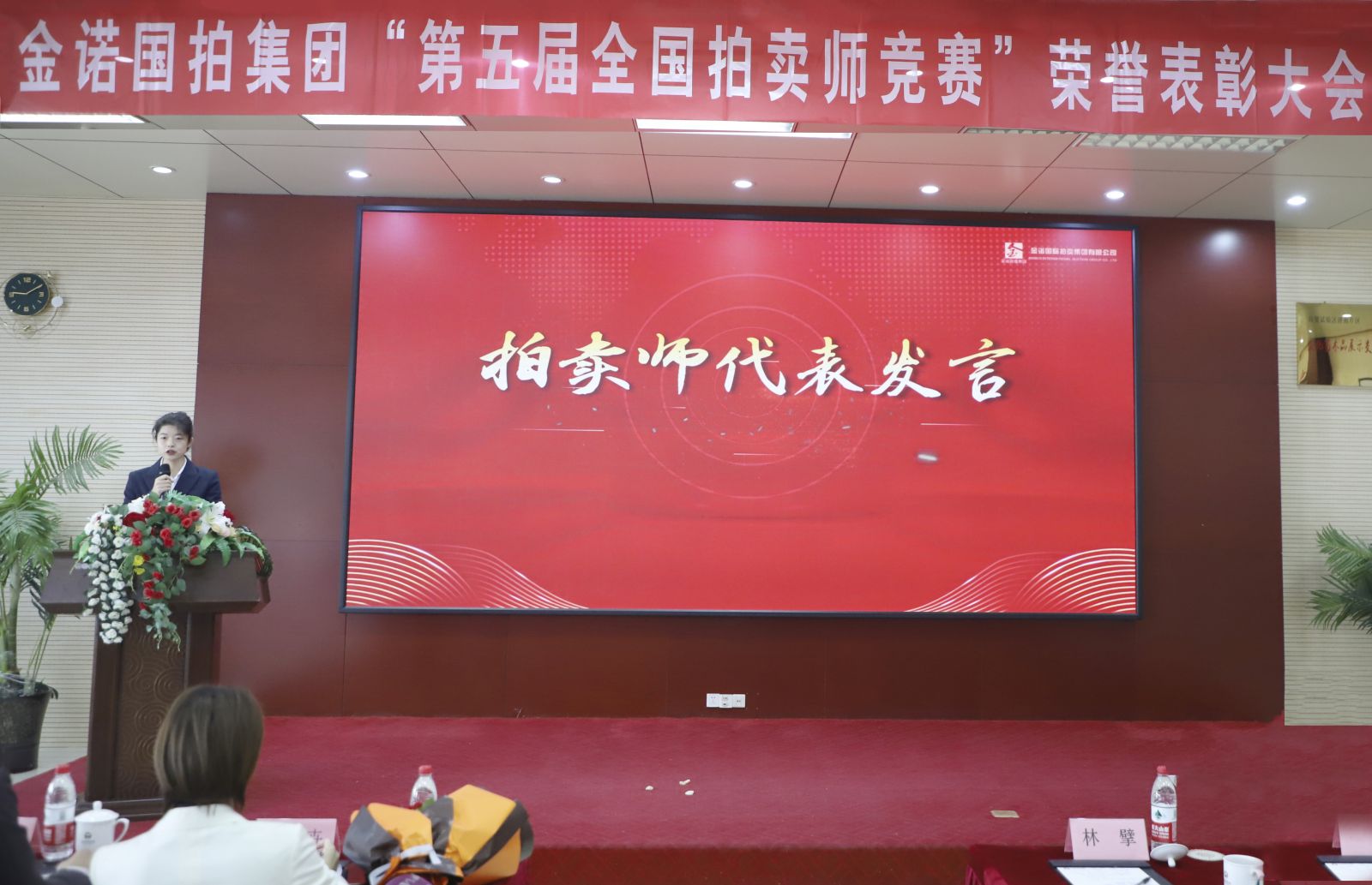 我是第35期全國(guó)拍賣師執(zhí)業(yè)資格考試合格人員劉雨佳。此時(shí)此刻作為新拍賣師代表在此發(fā)言,我感到無比榮幸。首先我要對(duì)在第五屆全國(guó)拍賣師競(jìng)賽中取得佳績(jī)的三位優(yōu)秀拍賣師表達(dá)祝賀。我們將以三位優(yōu)秀拍賣師為榜樣,汲取奮進(jìn)力量,展現(xiàn)金諾國(guó)拍集團(tuán)新一代拍賣師的風(fēng)采。
