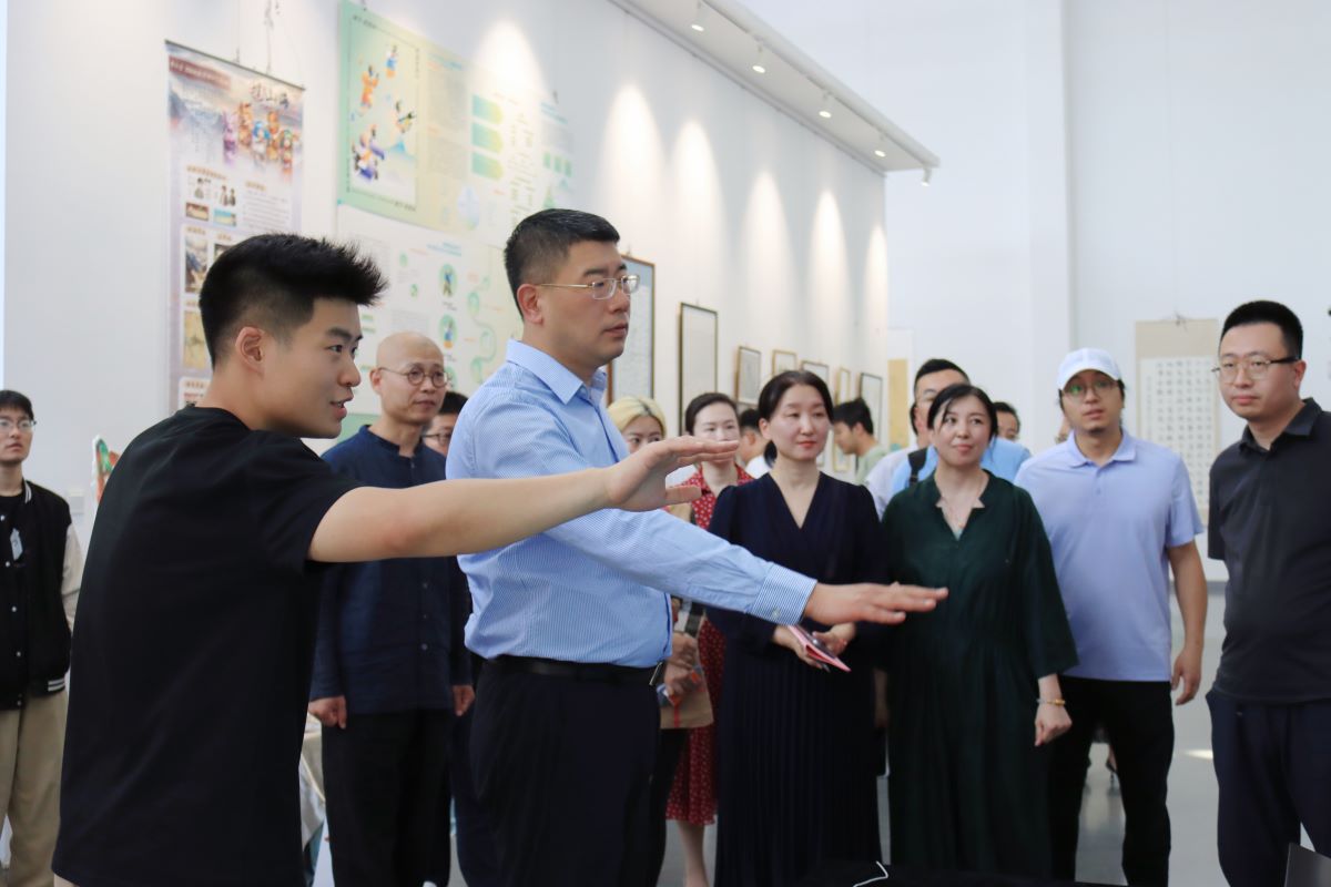 為全面展示山東財經(jīng)大學藝術學院專業(yè)教學成果,扎實做好學生就業(yè)推介工作,5月10日上午,藝術學院2024屆畢業(yè)作品展在海岱美術館開幕,副校長劉旻航,山東省文物保護修復與鑒定中心、山東博物館、金諾國際拍賣集團有限公司等13家合作共建單位代表,學校相關職能部門負責人、藝術學院師生參加活動。金諾國拍集團總裁位琳受邀參加本次開幕式活動并進行座談交流。
