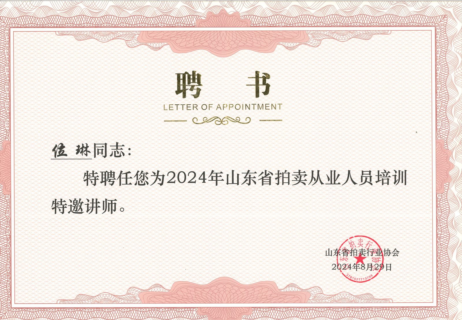 本次培訓(xùn)班省拍協(xié)聘請中國拍賣行業(yè)協(xié)會拍賣師主持技巧考試教官、考官李麗和位琳為特邀講師,并現(xiàn)場頒發(fā)了聘書。