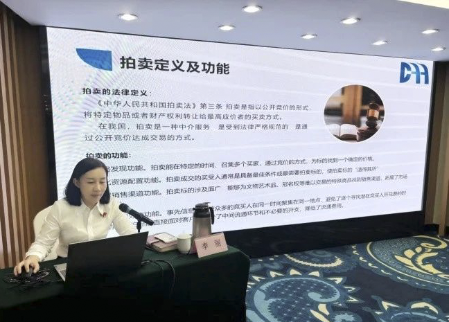李麗老師在講課中以《我們一起了解拍賣》為主題,從拍賣標的、當事人、程序、法律關(guān)系等多個知識點,為學(xué)員們詳細講解拍賣業(yè)務(wù)如何開展,全面梳理了拍賣企業(yè)落實合規(guī)要求,內(nèi)容翔實,學(xué)員們反響熱烈,收貨頗豐。
