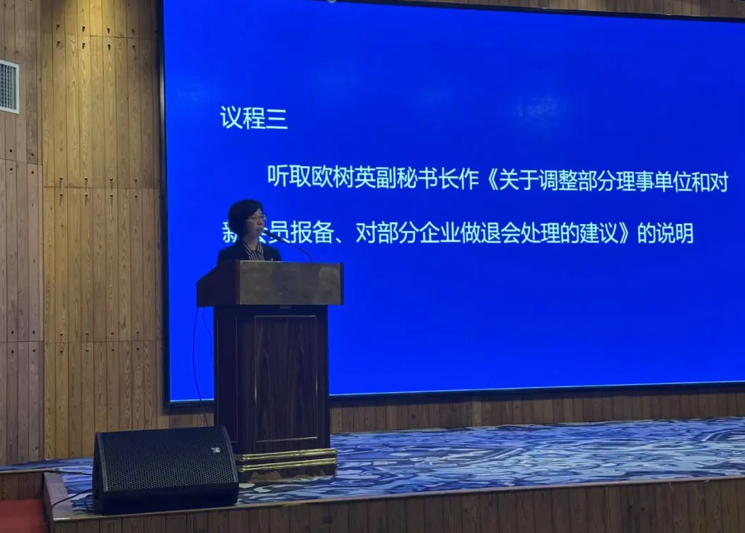 會上還審議通過了歐樹英副秘書長所作的《關于調(diào)整部分理事單位和對新會員報備、對部分企業(yè)做退會處理的建議》《關于提請免去蔣迎春副會長職務的建議》《關于向上海市商務委員會致感謝信的建議》。