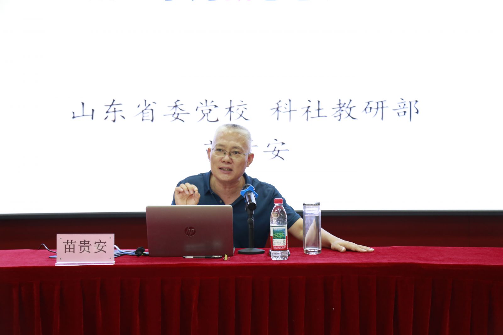 山東省委黨校科社教研部副教授苗貴安作《習(xí)近平總書記關(guān)于全面深化改革的一系列新思想、新觀點、新論斷》的講解培訓(xùn)。