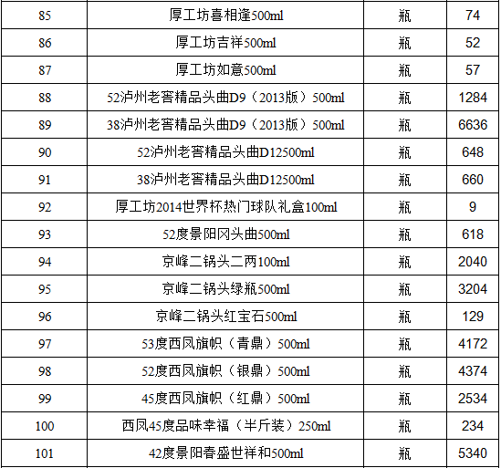白酒品牌有:五糧液、郎酒、洋河、景芝、西鳳、習酒、瑯琊臺、京峰、秘制御酒、景陽岡、紅杉樹、厚工坊等。